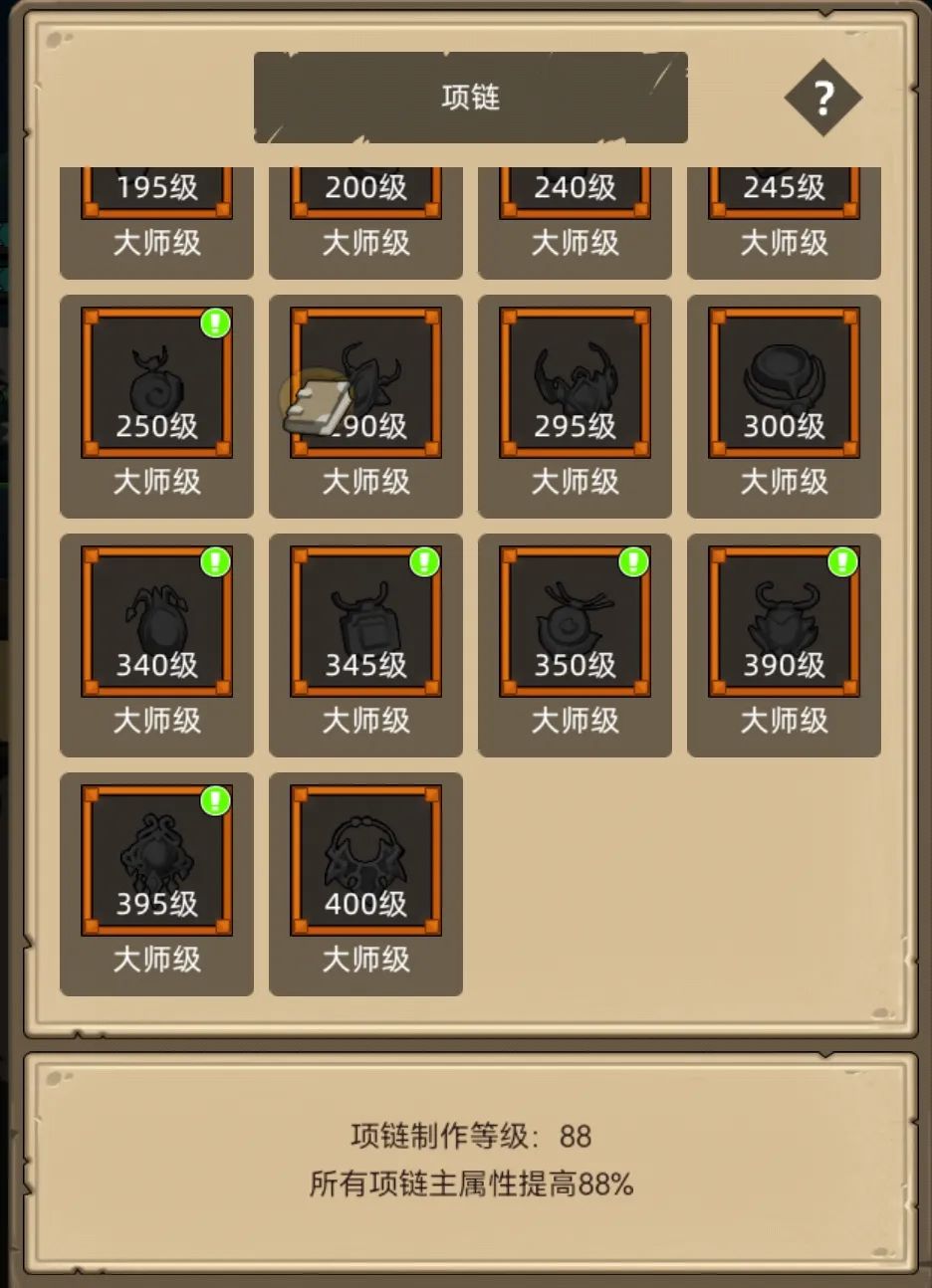 400版本项链没有太过亮眼的存在,爪赞推荐大家只把制作等级拉到大师等级,拿到主属性提升即可,有多余的金币再考虑投入到395红项链的制作当中。