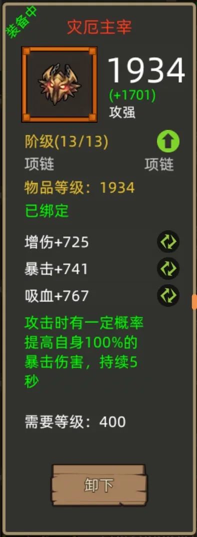 当然对于各项属性基本拉满的老哥来说,上个版本的红项链灾厄主宰依旧是毕业首选,基础属性上差别其实不大,只有164.